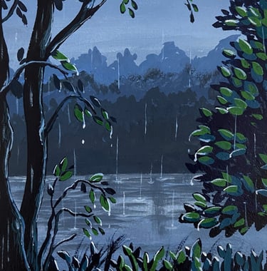 My work in semi-abstract acrylics, watercolors, gouache and the occasional digital art is a reflection of this dual life - finding harmony in the messy, beautiful middle ground.